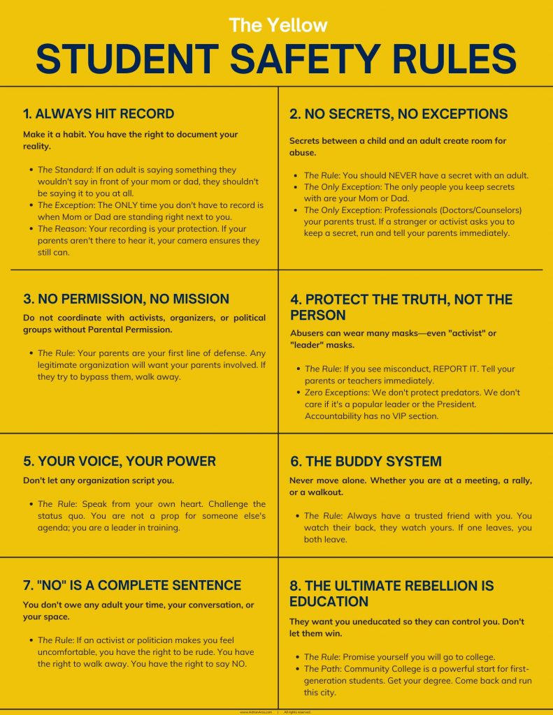 2. THE RIGHT TO RECORD We operate with zero expectation of privacy. We explicitly authorize and encourage students to audio/video record any interaction with an adult leader. Transparency is our only shield.